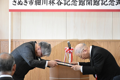 令和5年7月から建設工事を進めてきた「さぬき市細川林谷記念館」が完成し、10月5日(土曜日)開館記念式典が行われました。