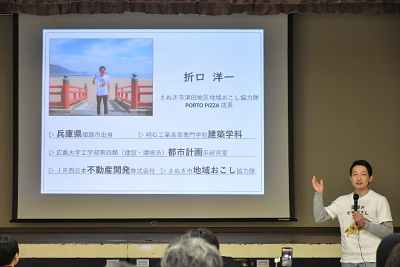 3月13日(木曜日)、3月末に任期終了を迎える地域おこし協力隊員の折原拓人さんと折口洋一さんが津田公民館で活動報告会を行いました。