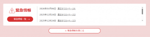 緊急情報があるときは、トップページだけでなく全てのページの上部に目立つように表示します。